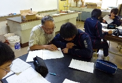 夏休み・冬休みに地域在住の方々を講師に招き、自主学習会を行っています。講師の先生方はわからないところをやさしく、ていねいに教えていただけるので、生徒たちには大変好評です。